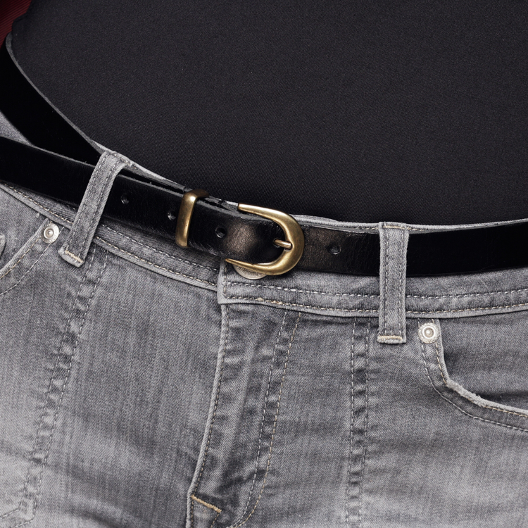 Dit leuke smalle riempje is een van onze populairste skinny riemen. Met een riemband van maar 1.5cm breed weet het toch de nodige aandacht te trekken. Het geheim zit hem in de vintage gouden ringetjes die het een vintage tintje geven. Een elegant riempje...- €34.95