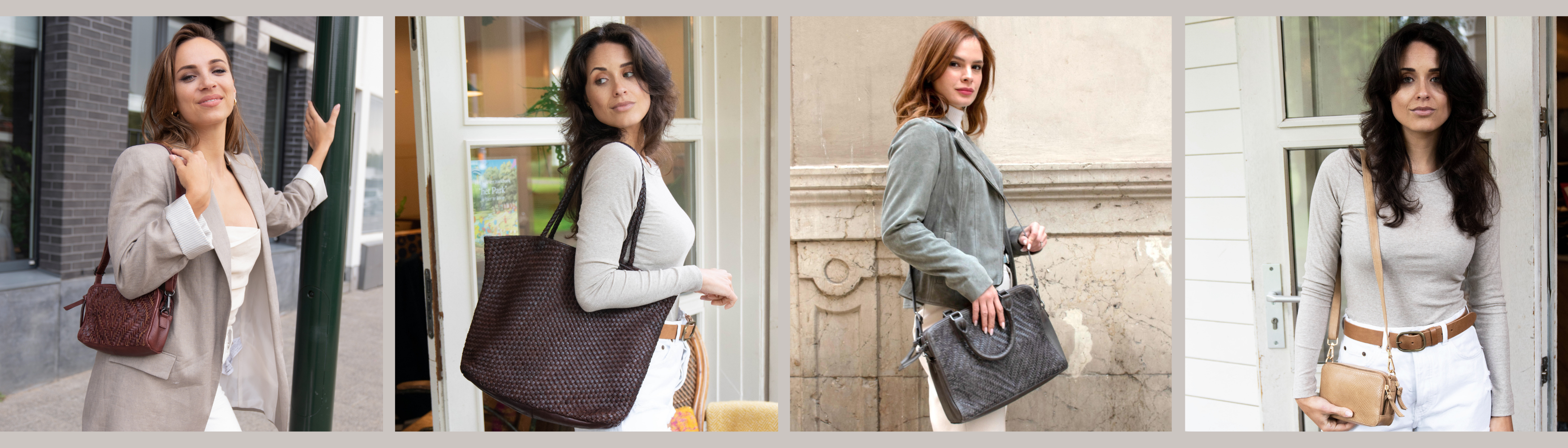 Bakel │ Leren Handtas met suede accenten - TaupeDe Bakel leren crossbodytas is gemaakt van eersteklas leer en combineert moeiteloos veelzijdigheid en stijl. Hij doet dienst als handtas en crossbodytas en past zich gemakkelijk aan je dagelijkse behoeften aan. De slanke leren riemen aan de buitenkant geven de tas een minimalistische textuur,...- €164.95