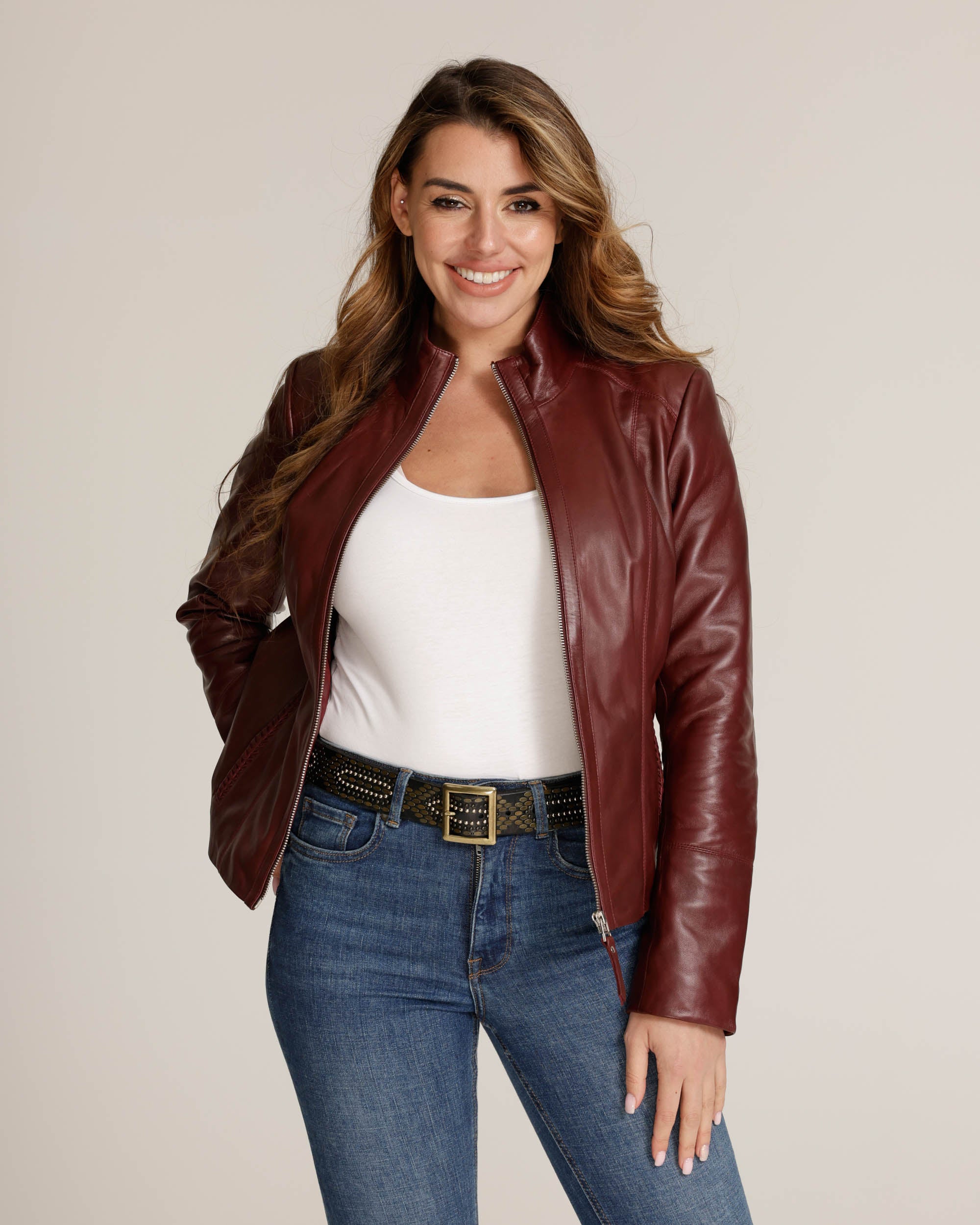 Deze stijlvolle leren jas voor vrouwen straalt zowel elegantie als klasse uit, dankzij het prachtige minimalistische ontwerp dat de perfecte balans vindt tussen klassiek en modern. Gemaakt van premium zacht leer om een leven lang mee te gaan, is de Chicago jas een tijdloos basisstuk dat je elke dag van de week kunt dragen. Combineer de leren jas met alles, van skinny jeans en enkellaarsjes tot een kokerrok en stiletto's voor een chique look. Deze stijlvolle jas is uitgerust met twee drukknoopzakken, een binnenzak en een ritssluiting aan de voorkant.
